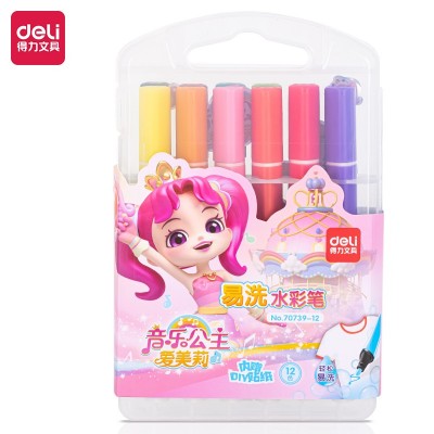 得力70739-12_PP盒装音乐公主三角杆水彩笔(混)(盒) SKU:yzwhyp101132