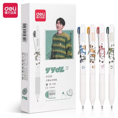 得力A528 源源得力臻顺滑按动学生中性笔0.5mm子弹头(黑)(支) SKU:yzwhyp101310