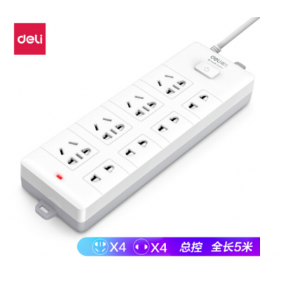 得力18259插座_4+4_5米_PVC袋装(白)(只) SKU:yzwhyp101325