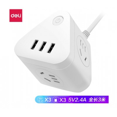 得力18321-03插座_3组+3U_3米_彩盒装(白)(只) SKU:yzwhyp101334