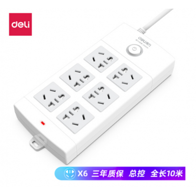 得力18207插座_6组_10米_PVC袋装(白)(只) SKU:yzwhyp101354