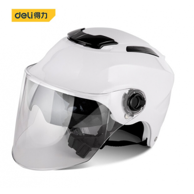 得力DL885002 电动车头盔男女冬季电瓶车机车安全帽四季通用 半盔亮白色 均码54-61cm SKU:yzwhyp301711