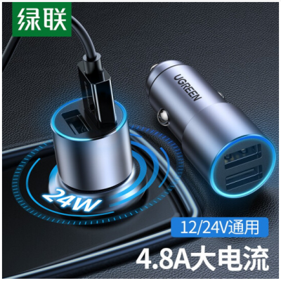 首页 > 广播、电视、电影设备 > 组合音像设备 > 会议、广播及音乐欣赏系统 > 绿联 车载充电器 汽车点烟器一拖二双USB4.8A快充24W总功率车充头电源转换器插头扩展口通用苹果华为小米手机 SKU:yzwhyp301721