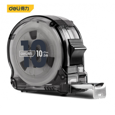 得力DL271025T 透明钢卷尺盒尺伸缩尺拉尺10mx25mm SKU:yzwhyp301733