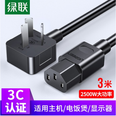 绿联 电脑主机电源线 3米 国标三孔线 适配器连接线延长线 SKU:yzwhyp301738