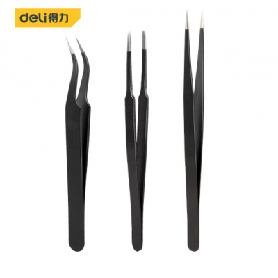 得力DL396003 不锈钢镊子3件套 弯头镊子+平头镊子+尖头镊子 SKU:yzwhyp301787