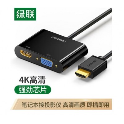 首页 > 广播、电视、电影设备 > 组合音像设备 > 会议、广播及音乐欣赏系统 > 绿联(UGREEN)40744 HDMI转VGA+HDMI二合一转换器 4K高清视频转接头 电脑笔记本机顶盒接电视显示器投影仪线 SKU:yzwhyp301913