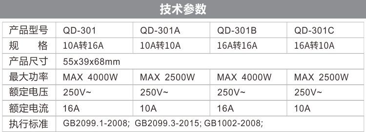 七度品尚301C 6A转10A 16A大功率插座热水器空调电源转换器大转小一转一转换插头插座 2500W SKU:yzwhyp101439