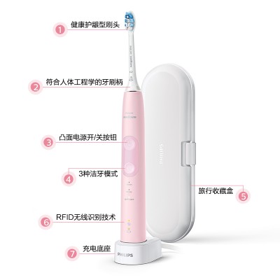 飞利浦电动牙刷成人情侣款 送礼物 健康护龈 力度感应 含牙刷盒3种模式6倍清除牙菌斑 粉色小美刷HX6856 SKU:yzwhyp200850