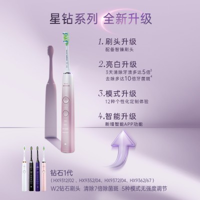 飞利浦电动牙刷星钻刷成人声波电动牙刷男士女士牙医推荐生日礼物钻石牙刷升级款 樱花粉HX9911/68 SKU:yzwhyp200857