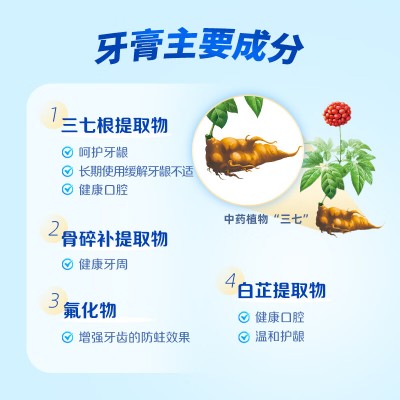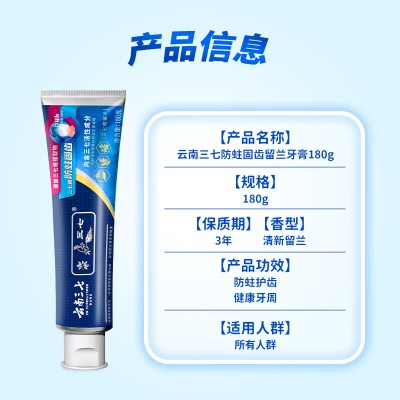 云南三七 防蛀固齿牙膏180g三七根留兰 SKU:yzwhyp200886