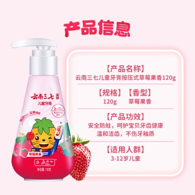 云南三七 泵式儿童草莓果香牙膏120g SKU:yzwhyp200888