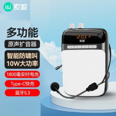 首页 > 广播、电视、电影设备 > 组合音像设备 > 会议、广播及音乐欣赏系统 > 索爱(soaiy)S-318PRO小蜜蜂扩音器教师专用智能防啸叫10W麦克风蓝牙喇叭导游导购音箱Type-C大功率PLUS版睿智黑 SKU:yzwhyp302154