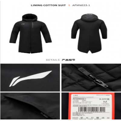 李宁AFMN033-1 正品带防伪18冬李宁足球系列男子长棉服
