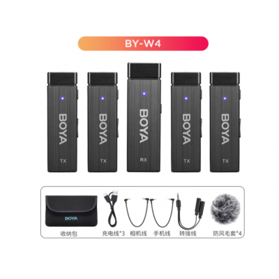 首页 > 广播、电视、电影设备 > 组合音像设备 > 会议、广播及音乐欣赏系统 > BOYA 博雅麦克风BY-W4迷你2.4GHz四通道无线麦系统多人手机直播带货短视频收录音无线小蜜蜂领夹麦话筒一拖四 SKU:yzwhyp302348