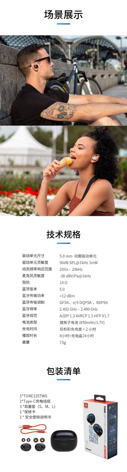 首页 > 信息化设备 > 耳机(耳麦) > JBL TUNE125TWS 真无线蓝牙耳机 入耳式音乐耳机 双路连接 苹果华为小米手机通用 T120TWS升级版 墨绿色 SKU:yzwhyp101754