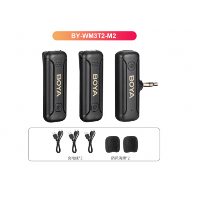首页 > 广播、电视、电影设备 > 组合音像设备 > 会议、广播及音乐欣赏系统 > BOYA 博雅麦克风BY-WM3T2-M2一拖二迷你无线领夹麦 3.5mm相机户外Vlog短视频网课直播收录音降噪无线话筒长续航 SKU:yzwhyp302377