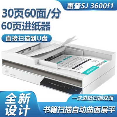 惠普HP 3600f1 A4 1200dpi USB3.0 30页60面/分自动双面 多文件混合扫描 超声波检测 双平台扫描仪 SKU:yzwhyp101805