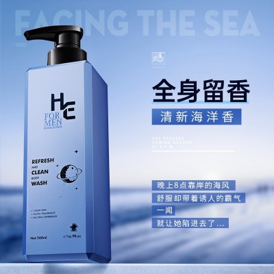 赫恩(H&E)男士净爽除螨沐浴露海洋香500ml(清肌净肤去汗味 沐浴乳男女) SKU:yzwhyp200989