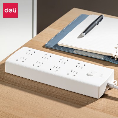 得力LX116(05)莹白系列延长线插座_8组_5米_PE袋装(白)(个) SKU:yzwhyp201009