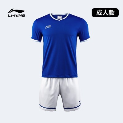 LI-NING李宁足球服套装男短袖球衣女定制印字训练服团购足球训练服足球衣 晶蓝色 AATP013-3(码数备注)