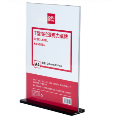 得力50864 T型桌牌 抽拉亚克力台签展示牌 透明210*297mm (块) SKU:yzwhyp101910