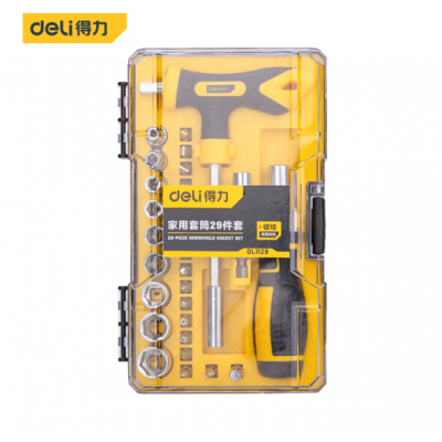 得力DL1129 棘轮螺丝刀套装T型扳手套筒转接头组套29件套 SKU:yzwhyp302777