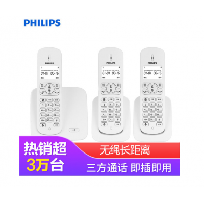首页 > 广播、电视、电影设备 > 组合音像设备 > 会议、广播及音乐欣赏系统 > 飞利浦(PHILIPS)无绳电话机 无线座机 子母机 办公家用 屏幕白色背光 持久待机 DCTG186(1+2)白色 SKU:yzwhyp302816