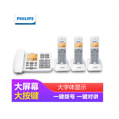 首页 > 广播、电视、电影设备 > 组合音像设备 > 会议、广播及音乐欣赏系统 > 飞利浦(PHILIPS)无绳电话机 固定座机 子母机 家用办公 一键拨号 三方通话 DCTG152一拖三(白色) SKU:yzwhyp302823