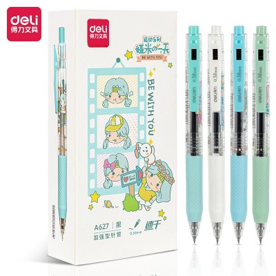 得力A627按动学生中性笔0.38mm加强型针管(黑)12支 SKU:yzwhyp102075