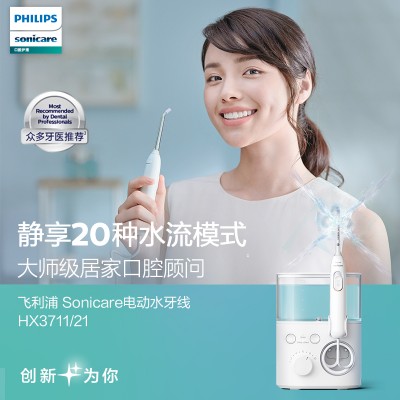 飞利浦(PHILIPS)电动水牙线 四向水流科技 水魔方 白色 HX3711/21 SKU:yzwhyp201144