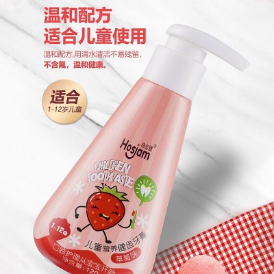 皓齿健(Hosjam)3-12岁儿童牙膏套装240g(草莓+韩国梨)科学含氟防蛀固齿 SKU:yzwhyp201172