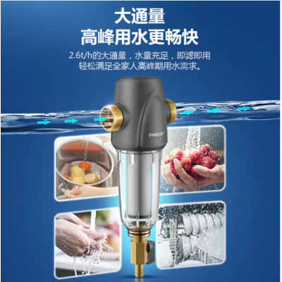 飞利浦(PHILIPS)AWP1821 家用中央前置过滤器 全屋净水40微米直冲洗2.6T/H大流量 管道过滤净水器 SKU:yzwhyp302955