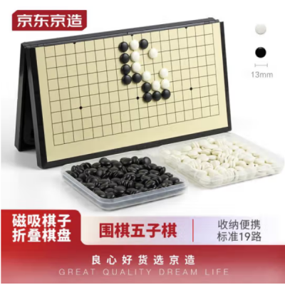 京东京造 围棋五子棋 磁性便携可折叠19路围棋棋盘 儿童少儿磁吸棋子套装 SKU:yzwhyp102188