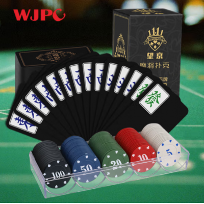 望京扑克黑金麻将牌 纸牌麻将筹码套装便捷家用小麻将扑克PVC材质磨砂手感 SKU:yzwhyp102257