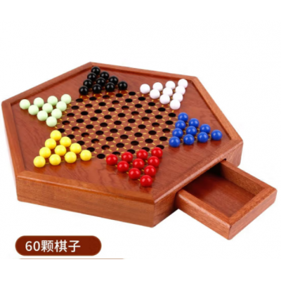 紫湖 跳棋大号亚克力棋子儿童中国跳跳棋木质抽屉棋盘60颗棋子套装12颗备子 SKU:yzwhyp102327