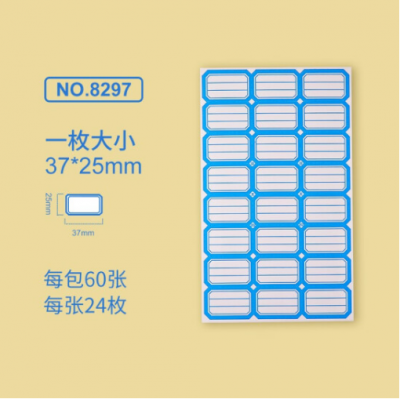首页 > 办公用品 > 文具 > 金隆兴8297标签贴纸 自粘性口取纸 24枚/张 60张/包 37*25mm 分区式蓝色 5包装 SKU:yzwhyp102328