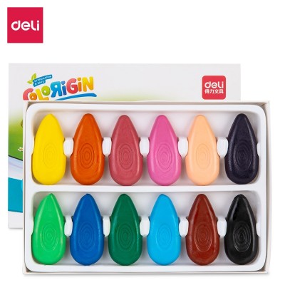 得力72074-12_12色水滴蜡笔(混)(盒)油画棒 萌趣防滑不脏手幼儿儿童涂鸦绘画画笔 美术用品套装画材文具 SKU:yzwhyp303207