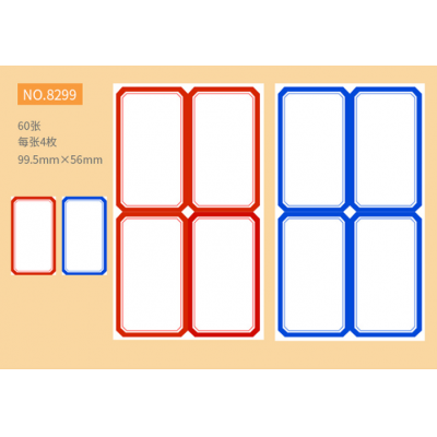首页 > 办公用品 > 文具 > 金隆兴8299标签贴纸 自粘性口取纸 4枚/张 60张/包 97*57mm 红色 5包装 SKU:yzwhyp102375