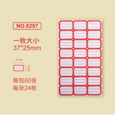 金隆兴8297标签贴纸 自粘性口取纸 24枚/张 60张/包 37*25mm 分区式红色 5包装 SKU:yzwhyp102378