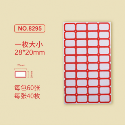 金隆兴8295标签贴纸 自粘性口取纸 40枚/张 60张/包 28*20mm 分区式红色 5包装 SKU:yzwhyp102382