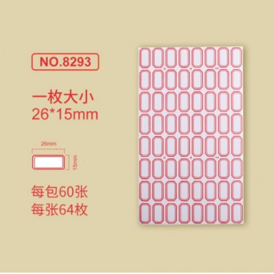 金隆兴8293标签贴纸 自粘性口取纸 64枚/张 60张/包 26*15mm红色 5包装 SKU:yzwhyp102384