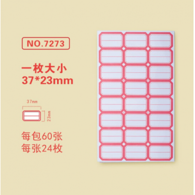 金隆兴7273-2标签贴纸 自粘性口取纸 24枚/张 60张/包 37*23mm 分区式红色 5包装 SKU:yzwhyp102396