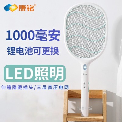 康铭 电蚊拍 充电式家用灭蚊拍驱蚊器苍蝇拍 大网面 LED照明 SKU:yzwhyp303384