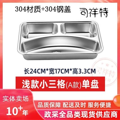 不锈钢餐盘学校食堂分格快餐盘(304材质+304钢盖)