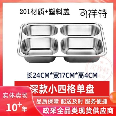 不锈钢餐盘学校食堂分格快餐盘(201材质+塑料盖)