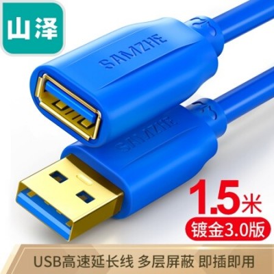 山泽(SAMZHE)UK-615 USB延长线 usb3.0高速传输数据线 公对母 AM/AF 鼠标键盘加长线蓝色1.5米 SKU:yzwhyp102635