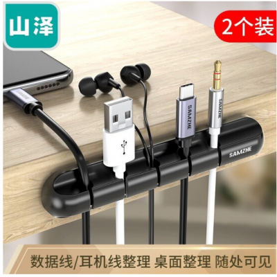 山泽LX-04 理线器 绕线器桌面数据线收纳固定电脑周边线材 扎线带缠线器黑色五卡 2个装 SKU:yzwhyp102638