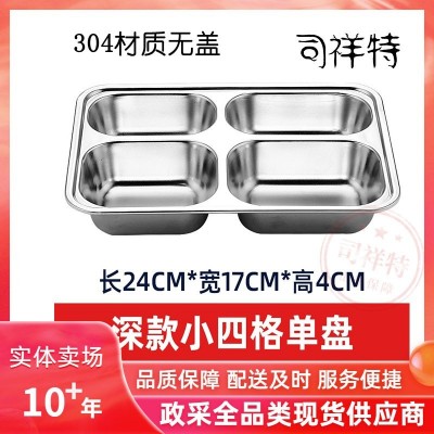 不锈钢餐盘学校食堂分格快餐盘(304材质无盖)