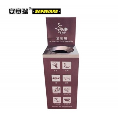 安赛瑞 不锈钢四分类垃圾桶 湿垃圾棕色50L干湿垃圾分类桶 可回收有害垃圾箱 SKU:yzwhyp303594
